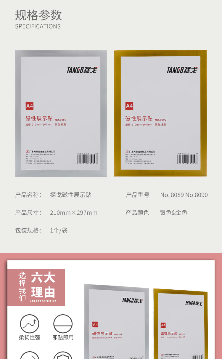 天章办公(TANGO)A4磁性展示贴免打孔银营业执照保护套证