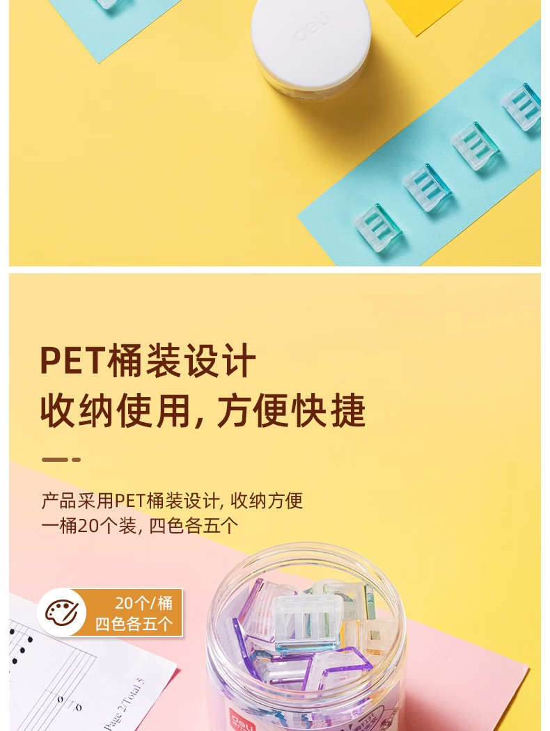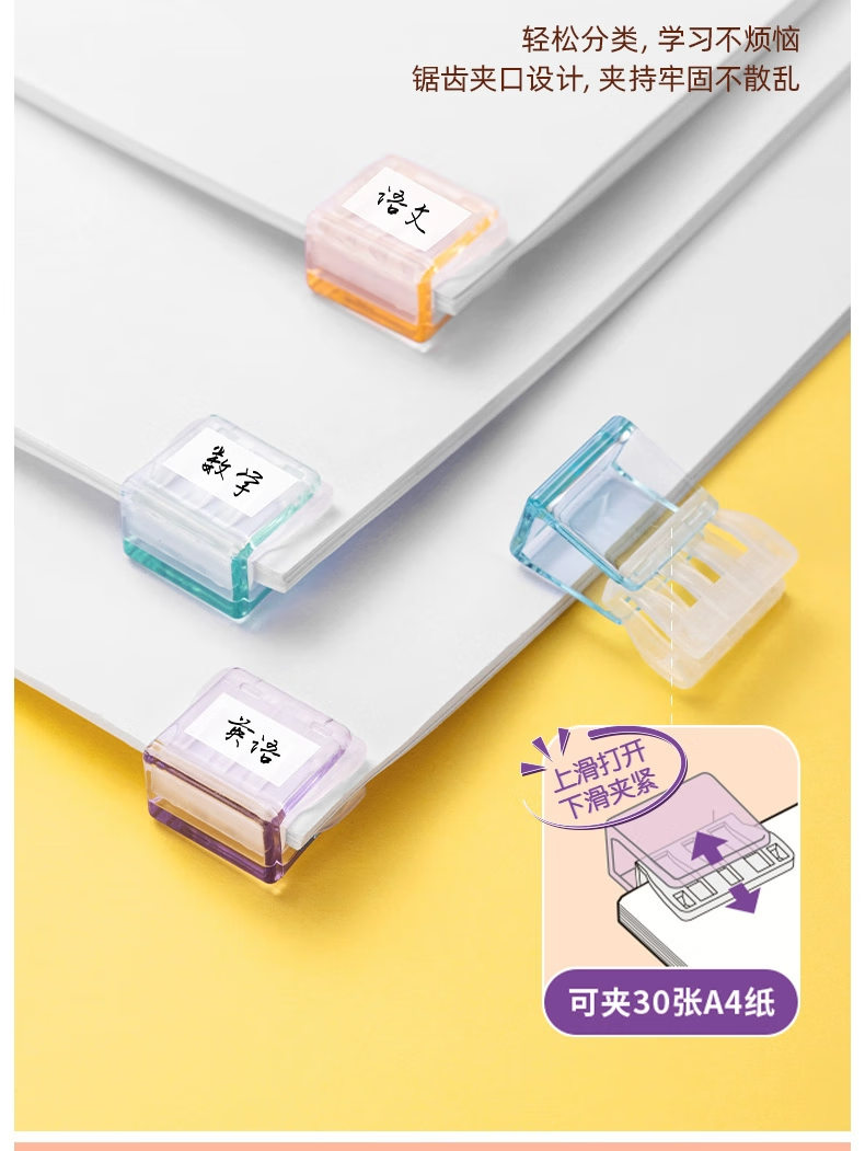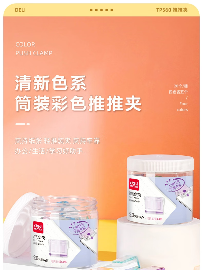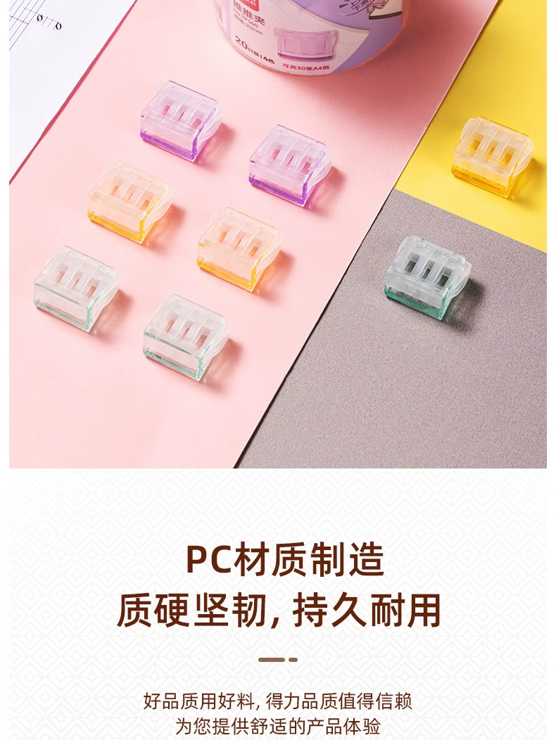 得力推推夹透明彩色多功能推夹器高颜值整理试卷文件夹子固定器办