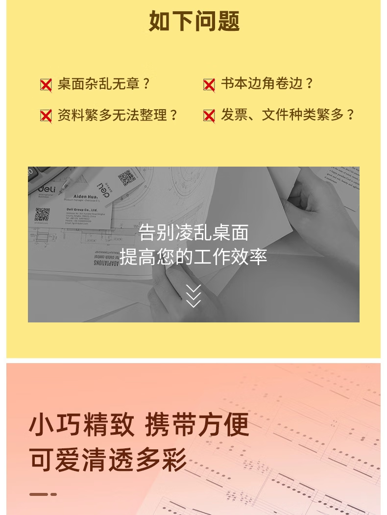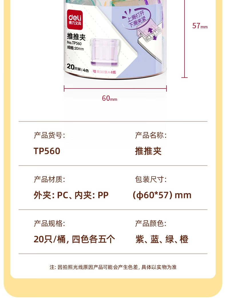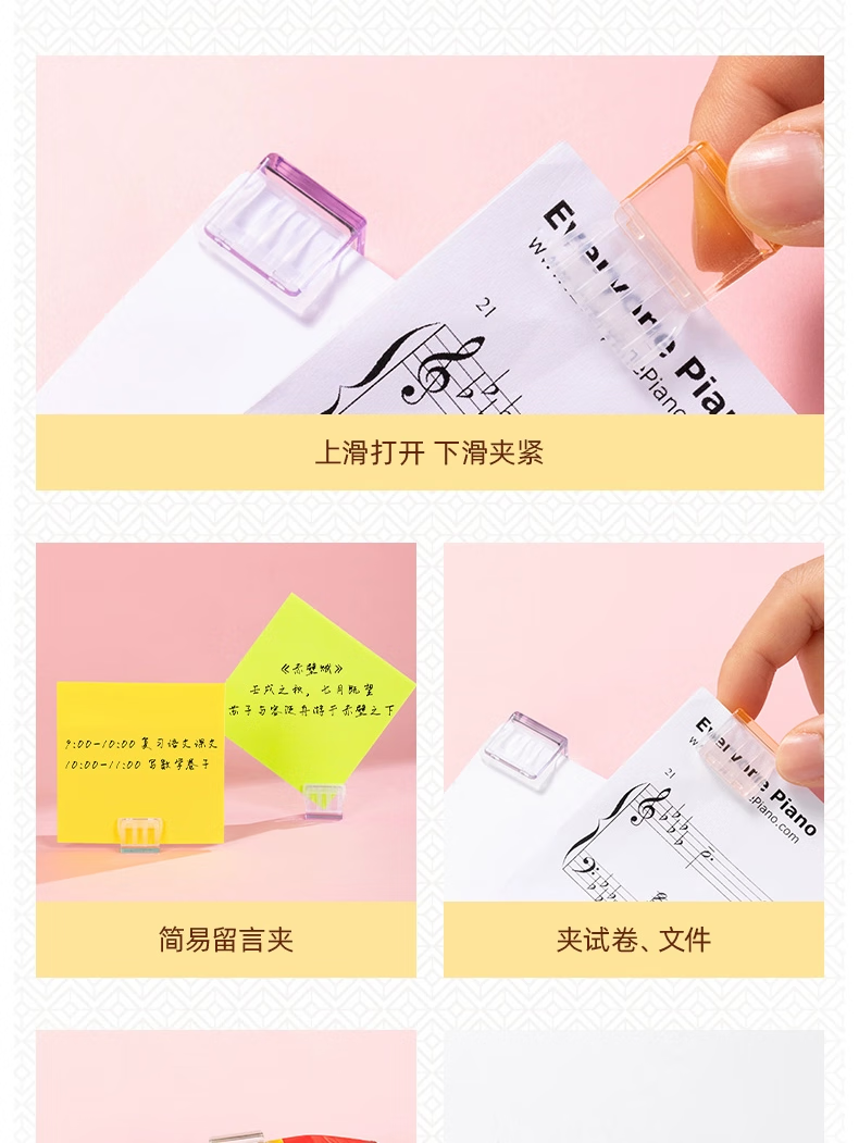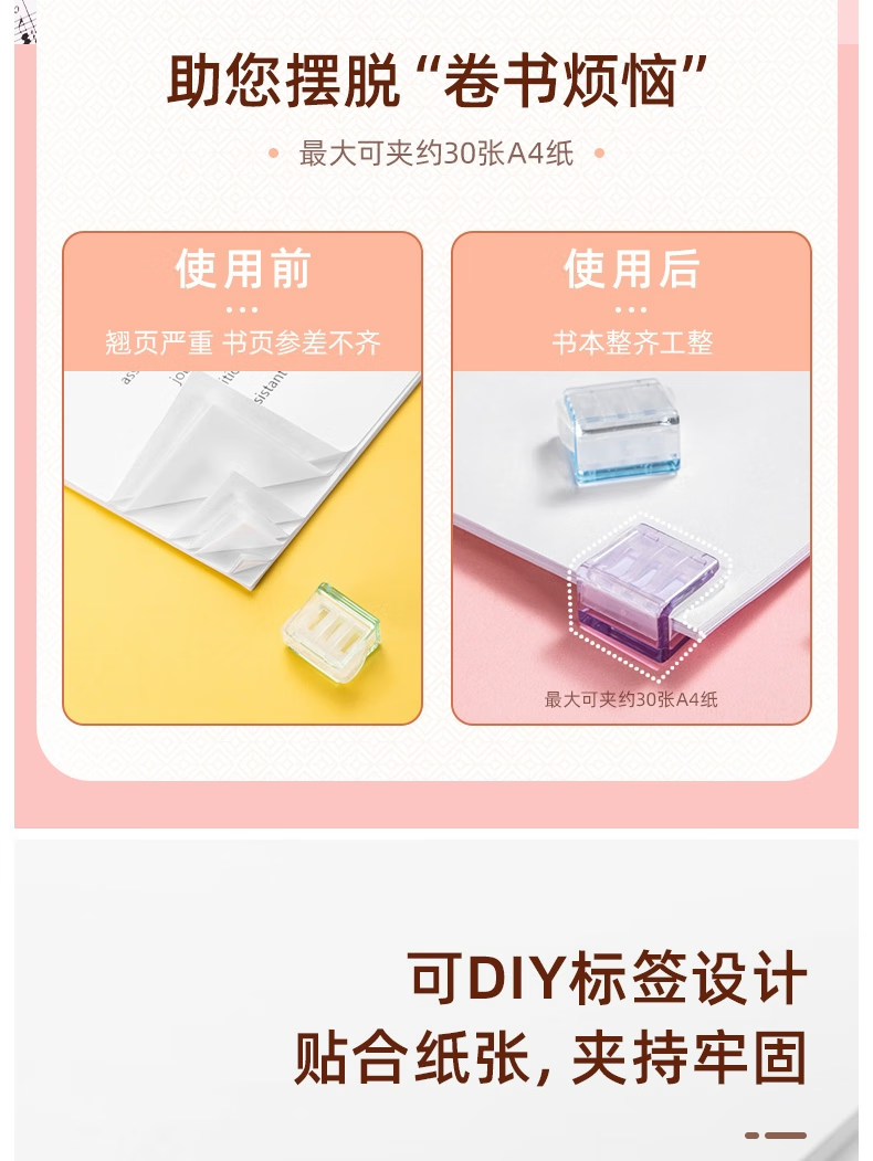 得力推推夹透明彩色多功能推夹器高颜值整理试卷文件夹子固定器办