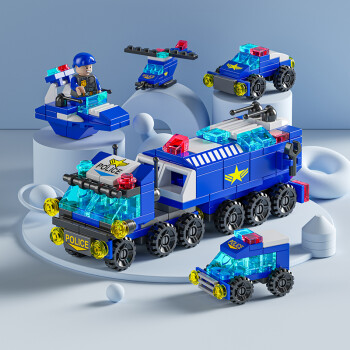 尚韵积木拼装儿童玩具男孩小颗粒特警车积木玩具女孩模型立体拼插