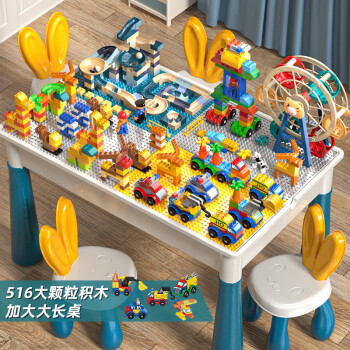 斯纳恩积木桌子大颗粒儿童玩具男女孩多功能diy拼装学习桌3岁